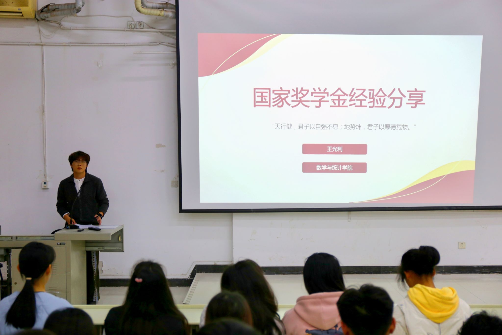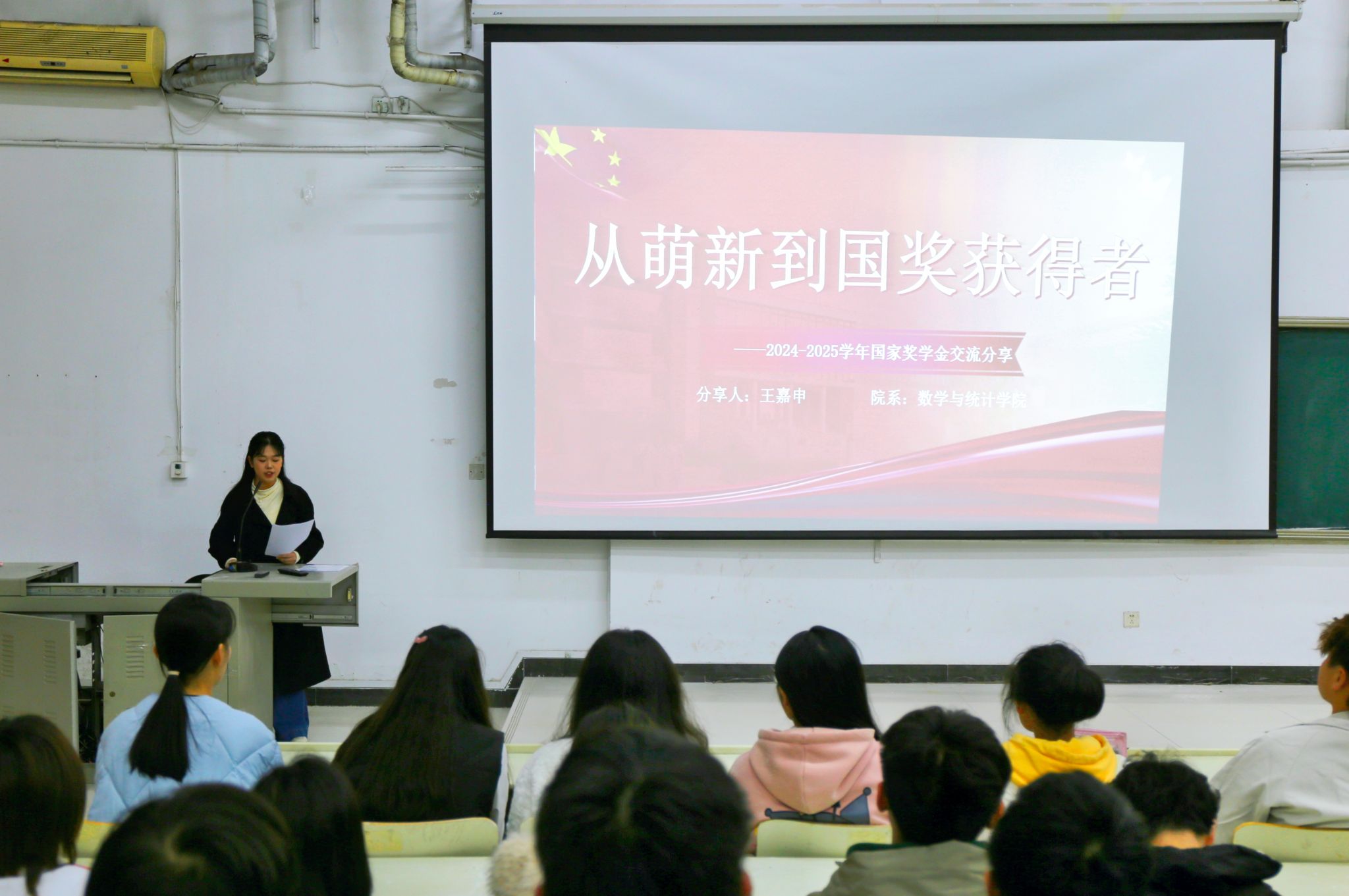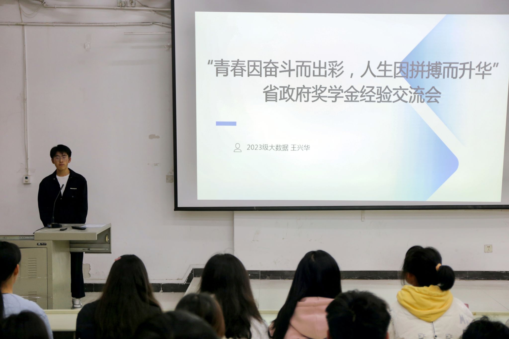 为进一步激发学生学习热情,充分发挥优秀学子的榜样引领作用,11月16日,数学与统计学院在东院8号教学楼205室举办奖学金获得者经验分享交流会。本次活动由国家奖学金获得者2023级数学与应用数学专业李佳琳、2023级数据科学与大数据技术专业王嘉申、2023级统计学专业王光利及省政府奖学金获得者2023级数据科学与大数据技术专业王兴华分享经验,2025级全体学生到场聆听。