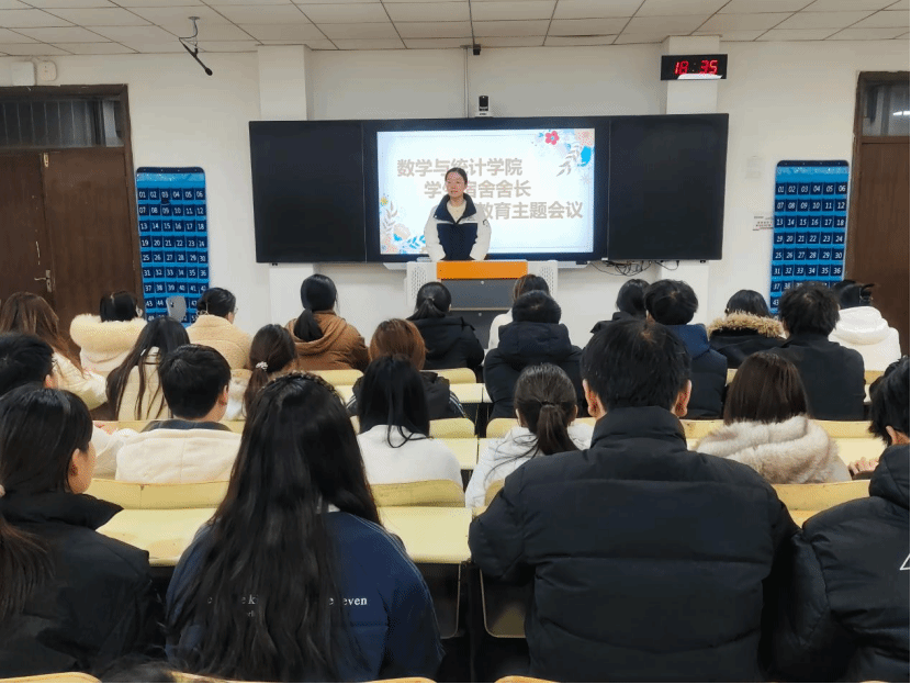 为进一步压实宿舍安全管理责任,筑牢宿舍安全防线,切实保障学生住宿环境安全稳定,12月8日,数学与统计学院在9号教学楼214室召开学生宿舍舍长安全教育主题会议。会议由辅导员韩珂主持,全院各年级宿舍舍长100余人到场参加。