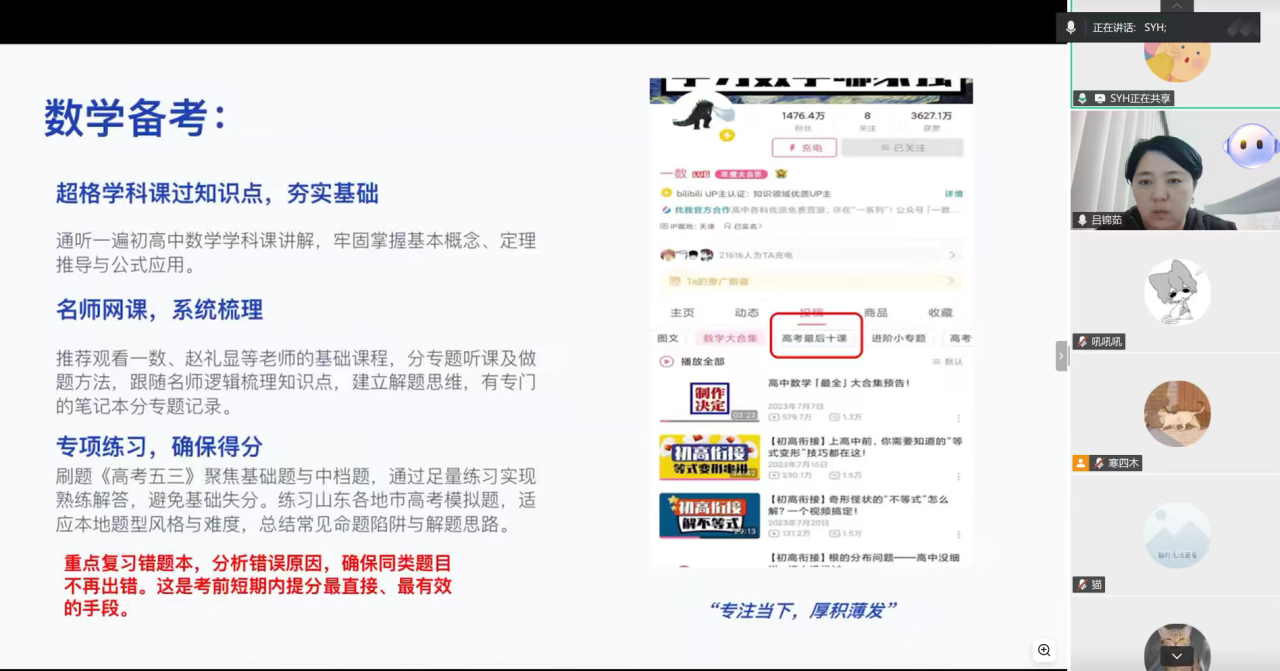 分享会上,两位优秀校友结合自身求职经历与一线从教实践,向学弟学妹们倾囊相授宝贵经验。王柯权介绍所在单位教师招聘信息,并围绕招聘流程、笔试备考、面试试讲等核心环节分享实战经验,叮嘱学弟学妹夯实专业基础,重视教育实习,以扎实学识与师德站稳讲台。孙玉焕聚焦师范生素养提升与技能备赛,分享师范生从业技能大赛参赛经验,从课堂设计、师生沟通及教师岗备考等要点入手,鼓励大家以赛促学、以练促教,全面提升综合竞争力。互动交流环节,同学们踊跃提问,围绕备考规划制定、面试细节把控、职业路径选择等困惑与学长学姐深入交流,学长学姐结合自身经历逐一耐心解答、悉心指导,线上交流氛围热烈融洽。