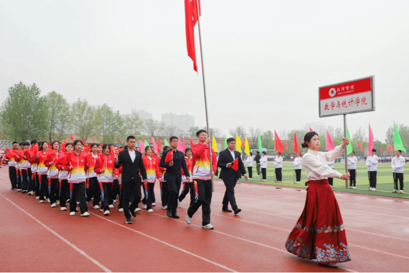 青春逐梦赛场,奋进不负韶华。开幕式上,数学与统计学院方阵精神抖擞、意气风发,学子们身着整齐服装,迈着铿锵有力的步伐昂首前行,嘹亮的口号响彻赛场,鲜艳的旗帜迎风飘扬,尽显我院学子朝气蓬勃、锐意进取的青春姿态,充分展现出学院深厚的文化底蕴与积极向上的精神风貌。