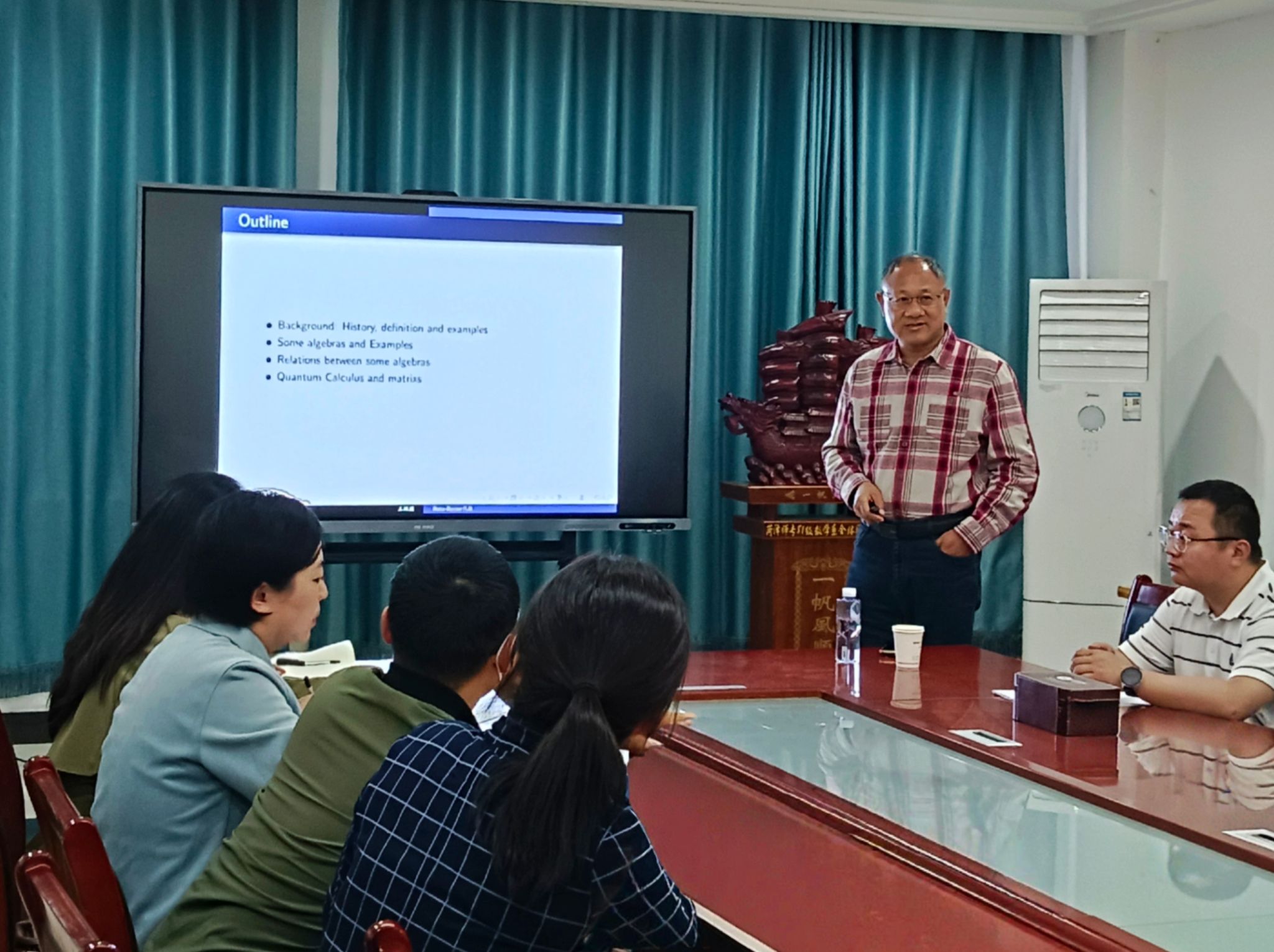 报告中,王顶国教授系统阐释导子、Rota‑Baxter代数等特殊算子的核心概念与典型实例,构建相应代数结构研究模型,深入剖析带有特殊算子的代数与相关学科领域的内在关联。整场报告逻辑严谨、内容精深,立足学术前沿、融汇研究实例,帮助在场教职工理清代数领域细分方向的研究思路与发展脉络,进一步夯实专业理论根基、提升学术研究素养。