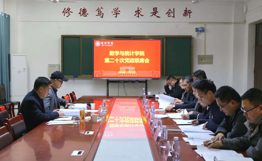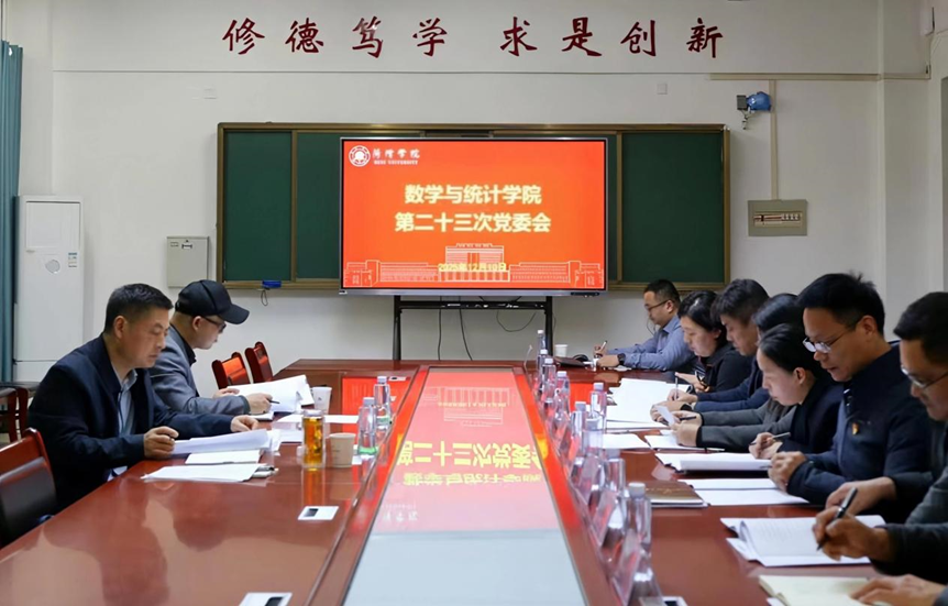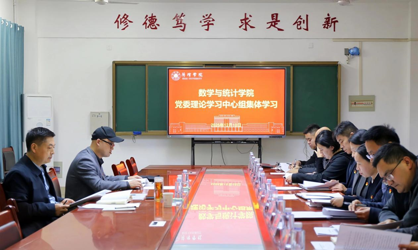 12月10日,数学与统计学院在6号教学楼206会议室开展党委理论学习中心组集体学习,并召开党委会、党政联席会。学校党委委员、副校长宿超,组织部副部长徐先战列席旁听。学院领导班子成员、党委理论学习中心组成员参加相关会议,学院相关人员列席会议。