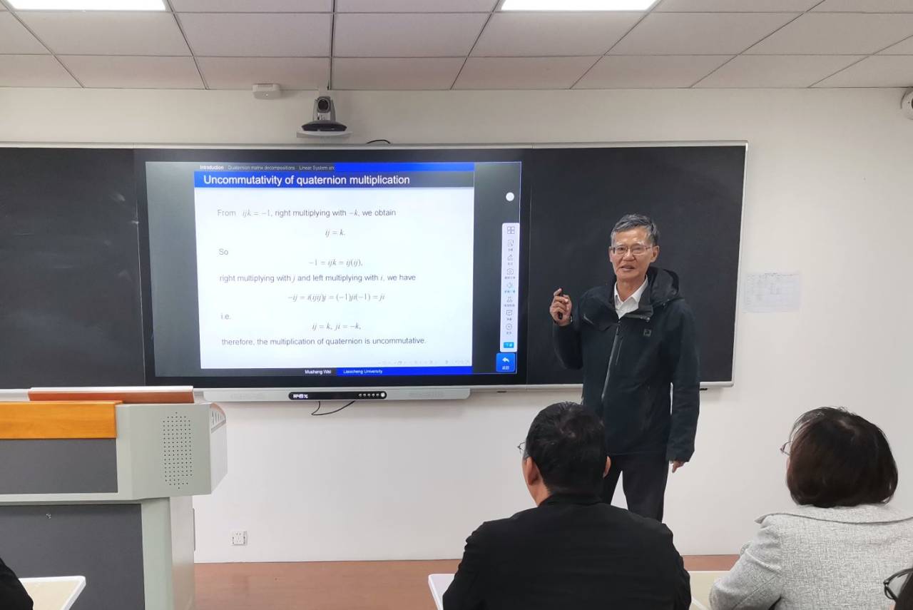 讲座中,魏木生以四元数概念、四元数应用的国内外发展为主线,分别介绍了保结构矩阵变换、保结构的Househhold变换和Givens变换、保结构的QR分解计算以及保结构的奇异值分解等内容,详细地阐述了他在四元数矩阵的新发现,并给出了出版专著的内容纲要。