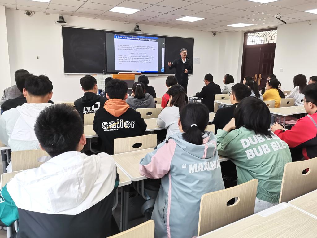 4月13日下午,华东师范大学终身教授魏木生先生应邀做客数学与统计学院“与信仰对话”讲坛,作题为《四元数矩阵计算》的讲座。此次讲坛由数学与统计学院院长于加尚主持,学院部分教师、2019级数学与应用数学专业学生聆听。