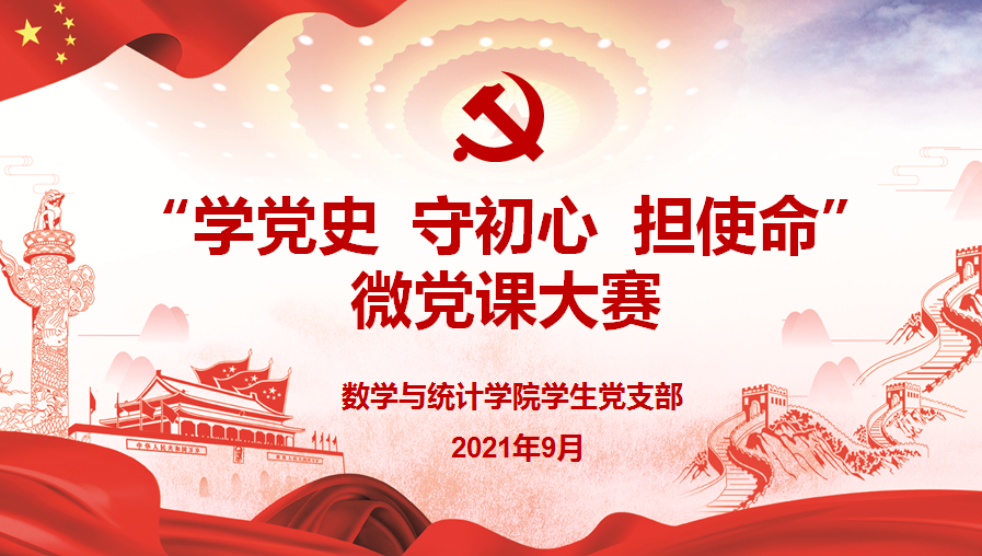 为深入学习贯彻习近平总书记在庆祝中国共产党成立100周年大会上的重要讲话精神,感召师生党员学党史、颂党恩、跟党走,传承红色基因,牢记初心使命,9月27日下午,数学与统计学院学生党支部举办“学党史 守初心 担使命”主题微党课比赛。