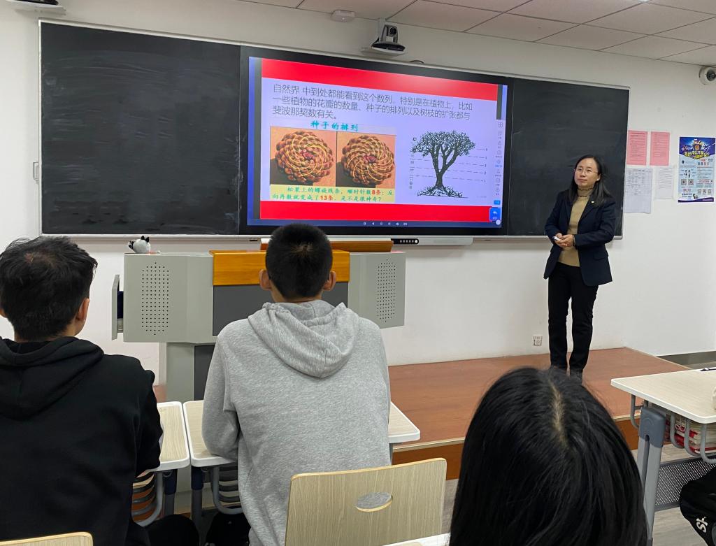 随后,她用生动而丰富的实例向同学们介绍了斐波那契数列,展示了数学文化和数学之美,也让大家深刻感悟到数学的无穷魅力及重要价值。
