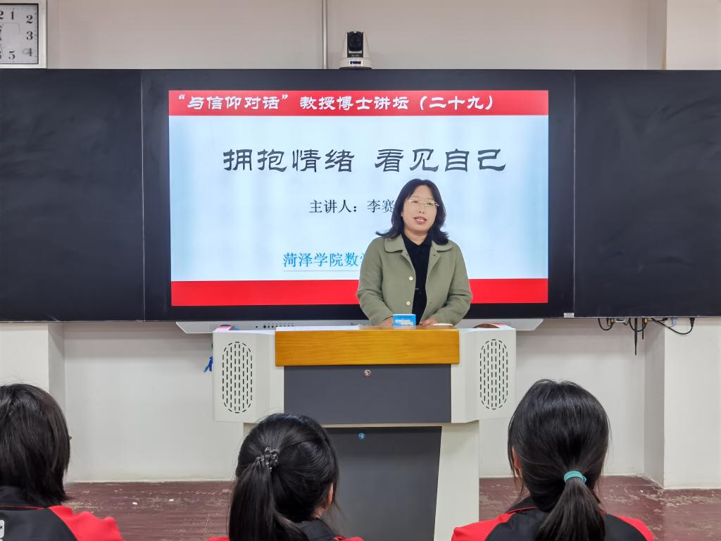 进一步加强新生心理健康教育,普及情绪管理知识,引导同学们掌握自我调适的方法, 11月8日晚,数学与统计学院邀请国家二级心理咨询师李赛副教授做客第二十九期“与信仰对话”讲坛,此次讲座由数学与统计学院学生工作室主任吕锦茹主持,2021级全体学生聆听。