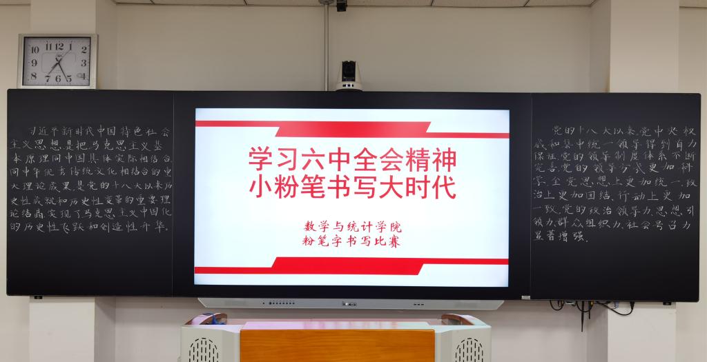 为深入学习党的十九届六中全会精神,促进师范生练就过硬本领,提升从业技能,我院学习十九届六中全会精神粉笔字书写大赛于11月23日在9号教学楼智慧教室举行。2019、2020级师范类专业学生参加比赛。