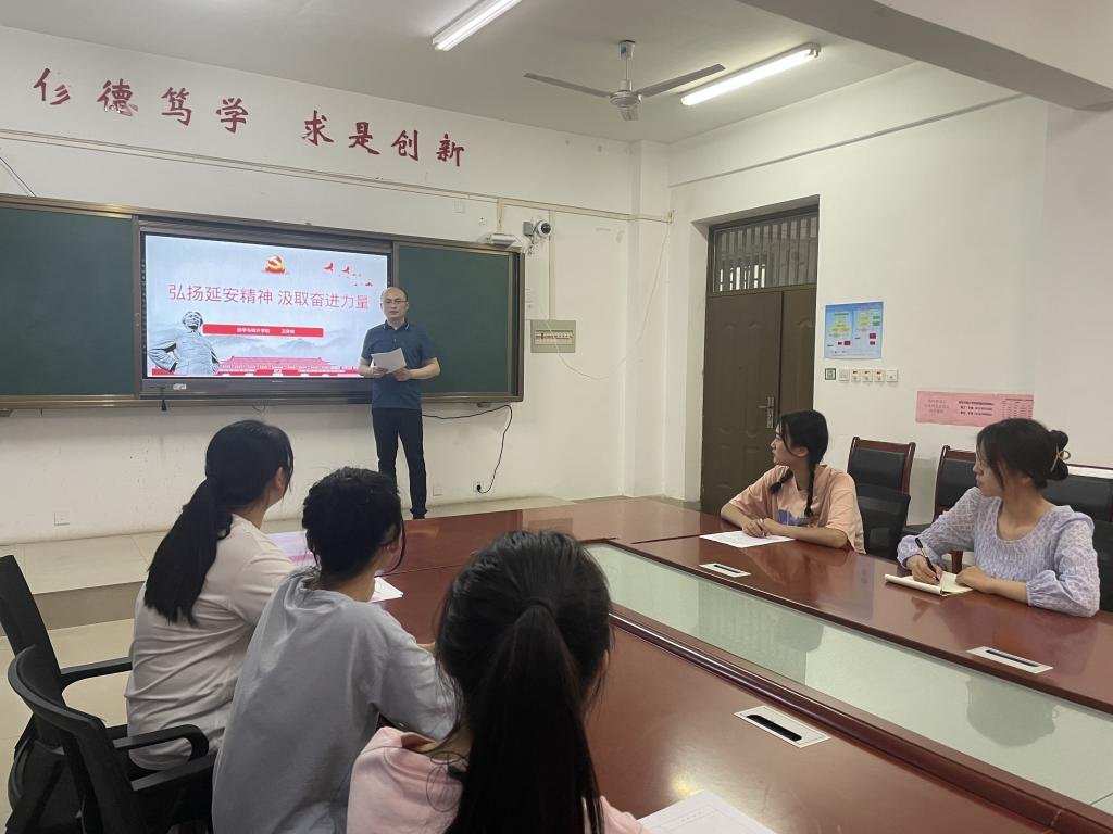 党委副书记、学生党支部书记王庆林以《弘扬延安精神 奋进伟大时代》为题为全体学生党员上党课,阐述坚定正确的政治方向是延安精神的灵魂,解放思想、实事求是是延安精神的精髓,全心全意为人民服务是延安精神的本质,自力更生、艰苦奋斗是延安精神的显著特征,并号召全体学生党员牢记延安精神、在新时代奋勇前行。